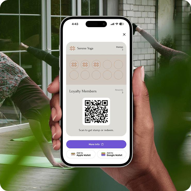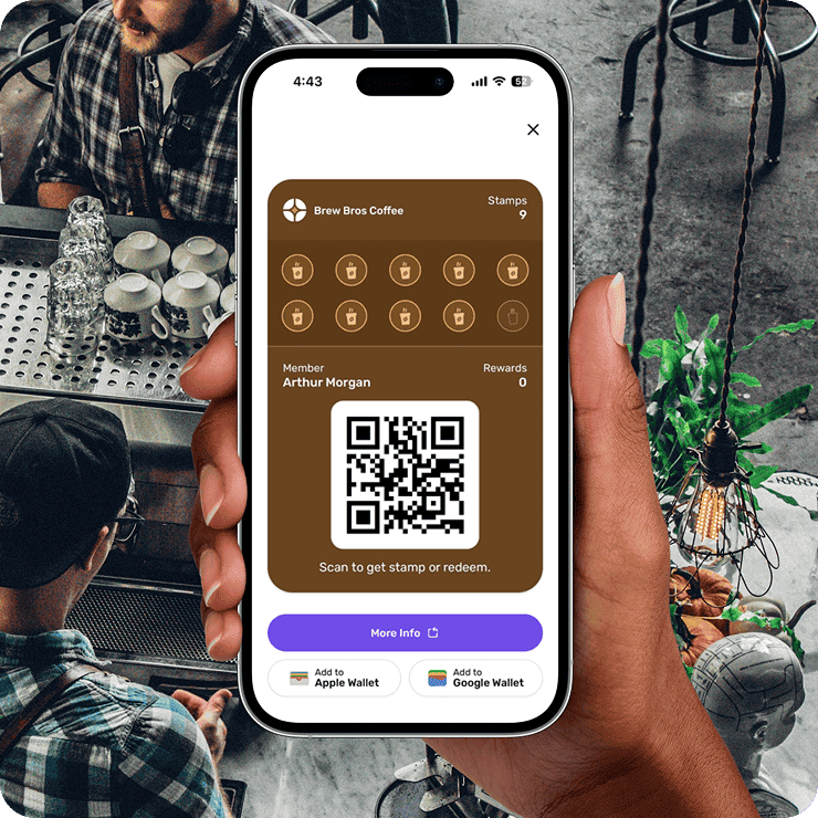 Customers can scan a QR code or click a link to add your stamp card to Apple or Google Wallet — no downloads needed.